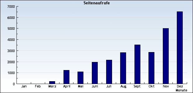 Von Februar bis Dezember 2004 gab es 27.419 Seitenaufrufe mit 385.724 Zugriffe mit insgesamt über 2 GB Traffic. 10.415 Besuche wurden registriert und wie aus der Grafik deutlich wird steigende Zahlen... ;-))
